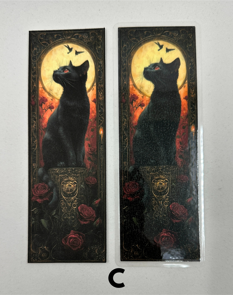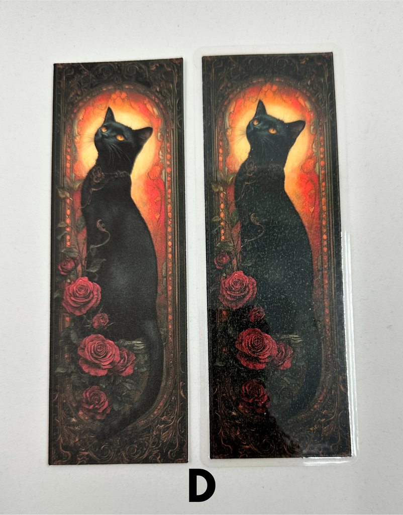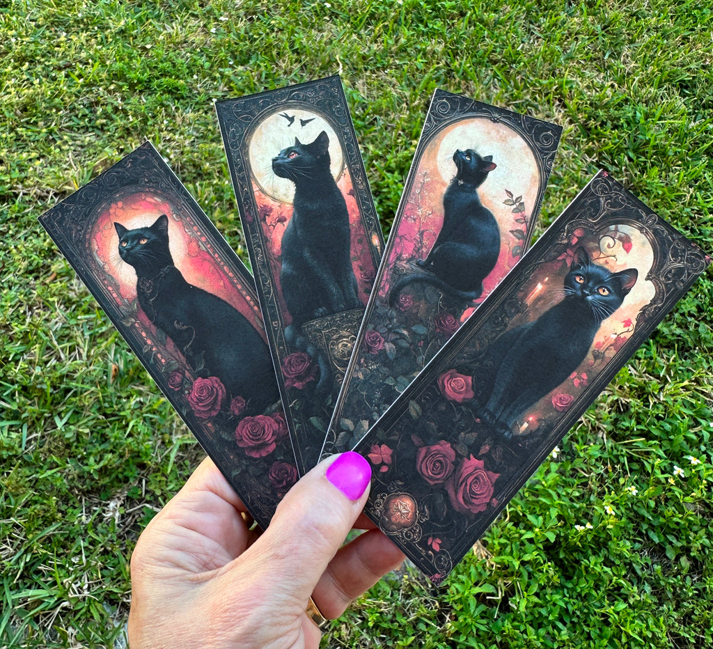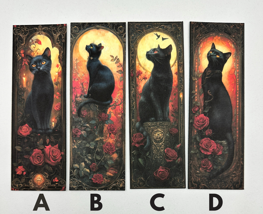 Gothic Black Cat Bookmark for readers who love black cats, dark fantasy art, and moody bookish accessories. This handmade 2 x 6 inch bookmark features striking gothic black cat artwork with a rich, dramatic feel that makes it a beautiful choice for cat lovers, spooky season shoppers, and readers drawn to darker, mysterious styles. Printed on premium cardstock and available in your choice of matte or laminated finish, this bookmark is available as a single bookmark or as a set.